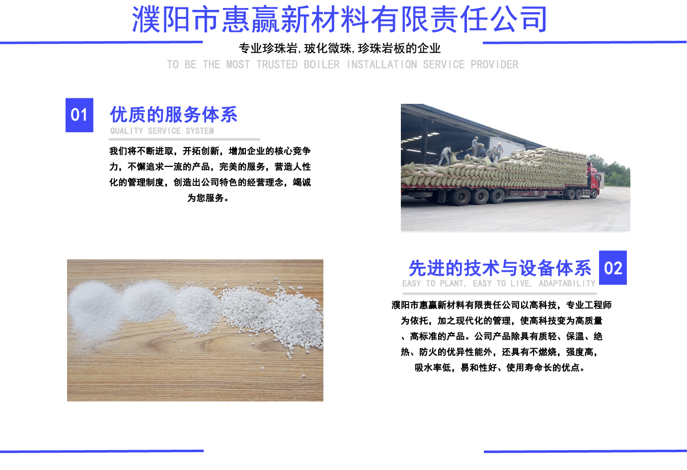 珍珠巖,?;⒅?玻化微珠保溫砂漿, 珍珠巖板,憎水珍珠巖,憎水型珍珠巖, 憎水型膨脹珍珠巖, 膨脹珍珠巖,珠光砂-濮陽市惠贏新材料有限責任公司 公司簡介/ ABOUT